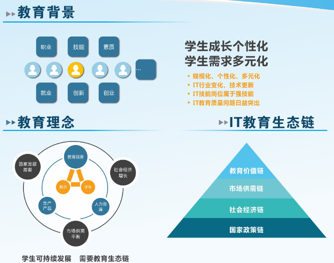 厚溥企業(yè)常務(wù)副總兼技術(shù)總監(jiān)翁高飛先生介紹公司產(chǎn)品與服務(wù)。翁總以“共建IT教育生態(tài)鏈,四維發(fā)展方略助力IT教育供給側(cè)改革”為主題給大家分享了共建IT教育生態(tài)鏈的必要性、如何建設(shè)IT教育生態(tài)鏈以及厚溥四維發(fā)展方略考慮。