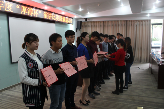 最后主持人對大賽進行最后總結,希望各位同學再接再勵,所有同學在求學路中繼續努力,各位老師精益求精繼續傳承厚溥創造機遇成就潛能的教學理念,追求更高更強的教學質量一路向前!本次大賽圓滿結束!